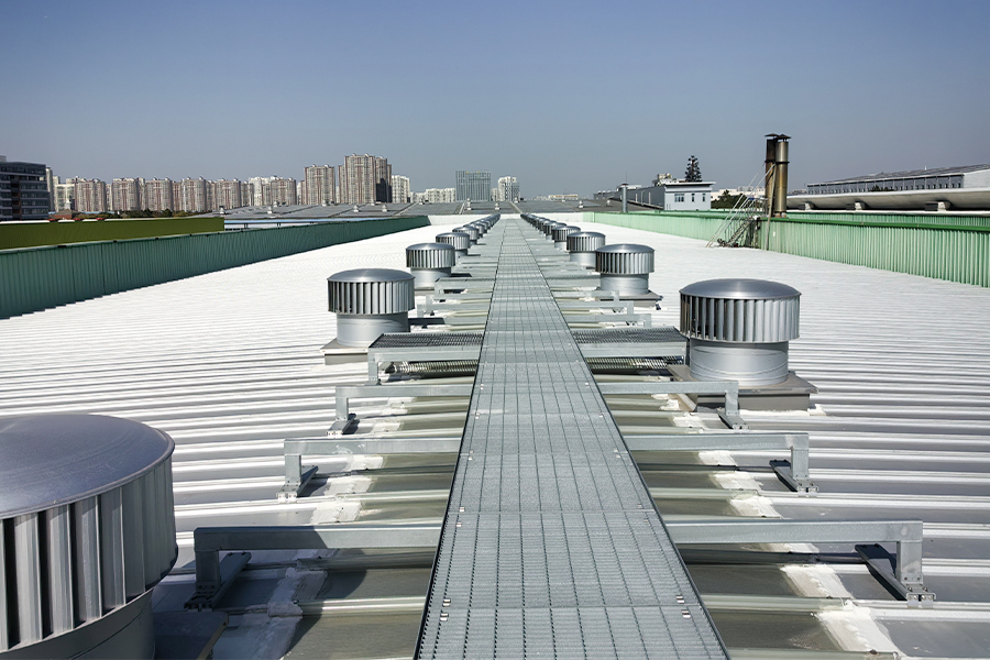نظام السقف المعتمد في هذا المشروع هو نظام سقف معدني ذو خط ثابت 360° 470، والذي يوفر مقاومة ممتازة للرياح وأداءً مقاومًا للماء. تم تجهيز السقف خصيصًا بأجهزة تهوية التلال وأغطية تهوية العادم غير المزودة بالطاقة وألواح ضوء النهار، مما يحسن بشكل كبير ظروف الإضاءة والتهوية الطبيعية الداخلية.